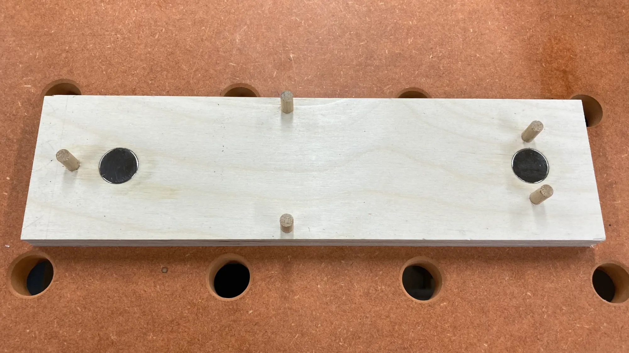 - Drill the holes for the magnets. It's better to start shallow and sneak up on the correct depth. The magnets should sit flush with the surface of the block. If they're proud of the surface, the plane bed won't be stable. If they're below the surface, the magnets' strength will be reduced.